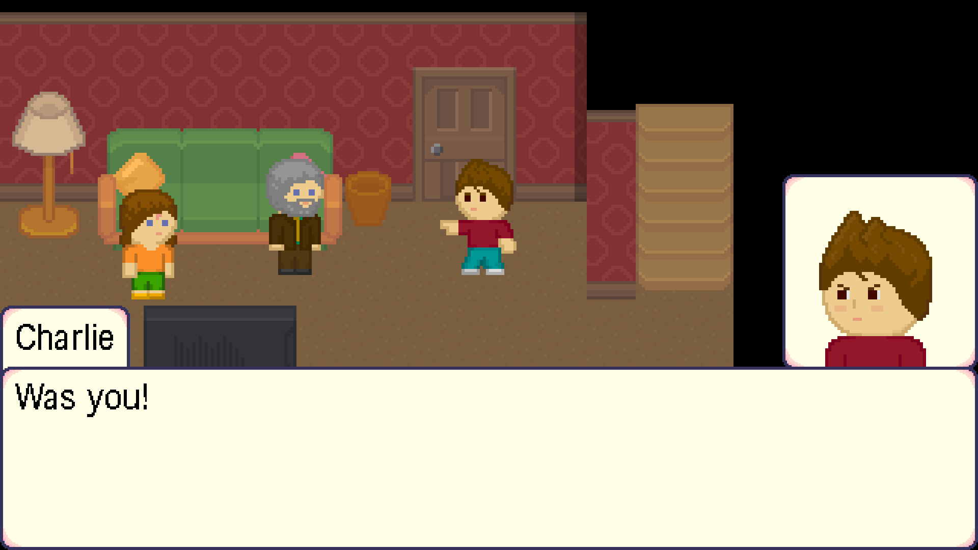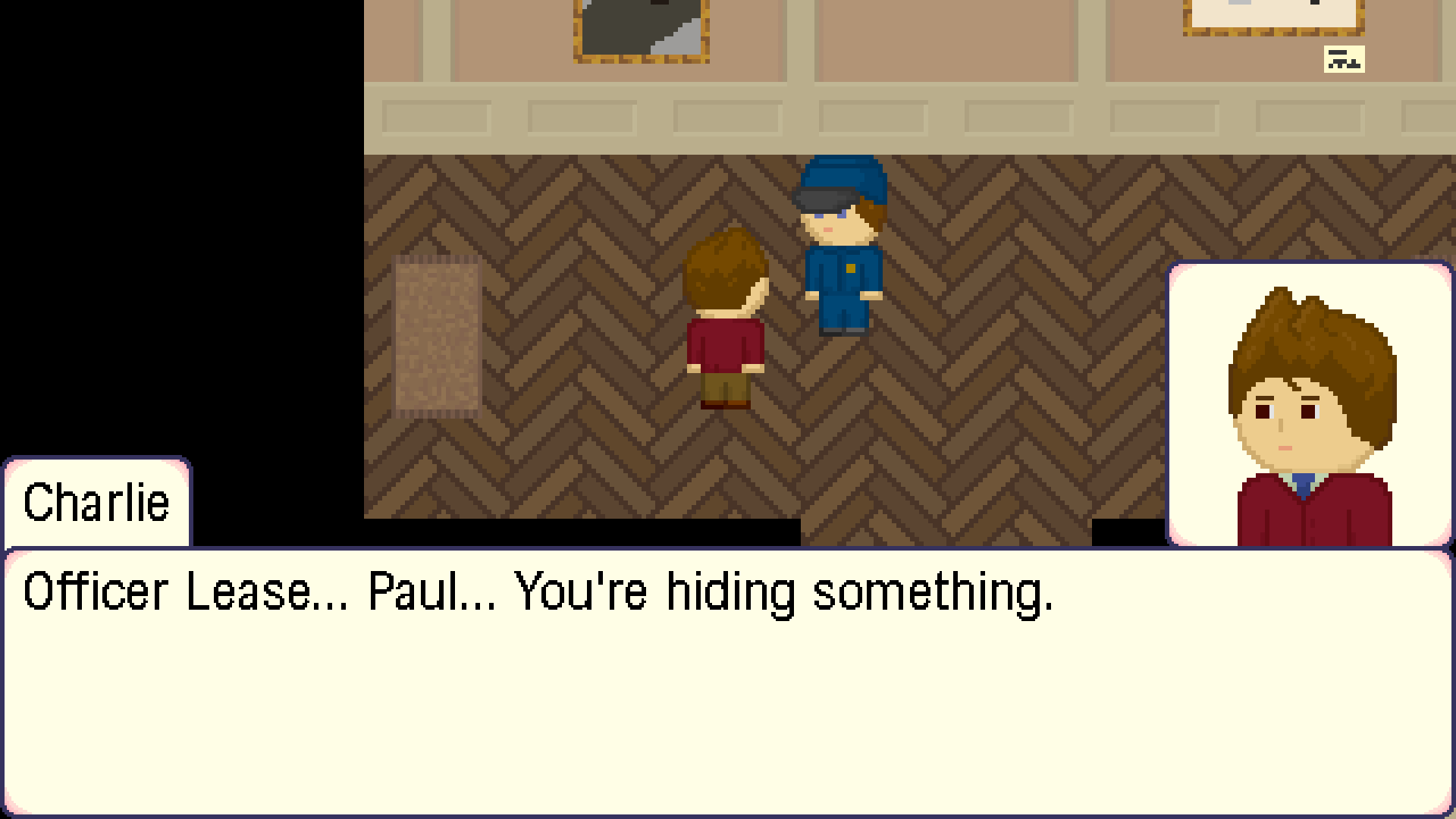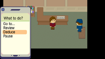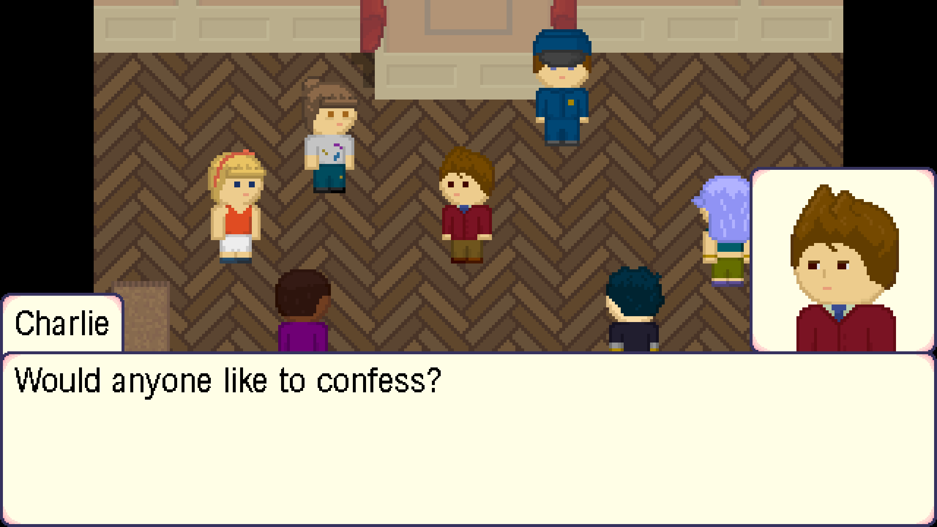 Confession is a light-hearted detective mystery game, inspired by Laura Bow and the Ace Attorney series.